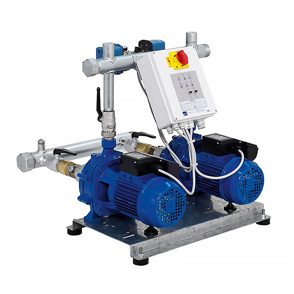 L’avviamento è gestito da un dispositivo intelligente preinstallato che scambia l’ordine di avviamento delle pompe ad ogni richiesta, quindi appena verrà aperto un rubinetto o un qualsiasi dispositivo che abbia bisogno di acqua, il quadro intelligente azionerà le pompe in base all’esigenza e alla quantità di acqua che serve. Viene utilizzato per approvvigionamento idrico per reti di distribuzione inerenti al settore industriale o domestico, irrigazione di giardini, parchi, campi sportivi e altre applicazioni simili. La struttura è realizzata da collettori in acciaio zincato, con valvola di intercettazione sul lato di aspirazione e di mandata di ogni pompa. Oltre a tutto quello incluso, il kit gruppo pompa, è predisposto per il collegamento di vasi espansione, alimentatori aria esterni, dispositivo contro la mancanza d’acqua.