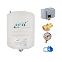 Il kit autoclave comprende il vaso espansione LEO da 24 litri e ed il pressostato tipo SQUARE D, garantisce un controllo della pressione del vostro impianto idrico. Il pressostato regolabile controlla automaticamente accensione e spegnimento di un’elettropompa. Si alimenta con tensione monofase ed è uno dei più rinomati ed affidabili al mondo per la vostra pompa ed in base alle vostre esigenze lui attiverà o disattiverà il sistema di pompaggio su cui verrà installato. Va installato ad esempio su una tes a 5 vie della vostra autoclave. Il modello sono preventivamente tarati a pressioni standard 1,4 – 2,8 bar, ma ha tramite apposito regolatore si può variare da 1,4 a 4,6 bar..