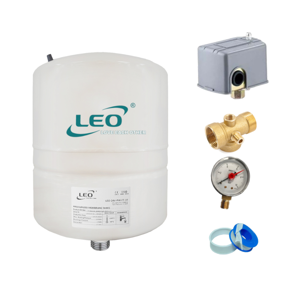 Il vaso espansione per acqua pulita LEO LEO24LV24 è usato negli impianti di casa o industriali per acqua potabile e riscaldamento. L’idrosfera con membrana sarà indispensabile per contenere le variazioni improvvise di pressione del circuito evitando sbalzi e colpi d’ariete, dove verranno evitando che vengano assorbiti dall’impianto. All’interno il vaso autoclave ha una particolare membrana ad elevato spessore ed una valvola di riempimento integrata che garantisce una pressione massima d’esercizio fino a 10 bar.