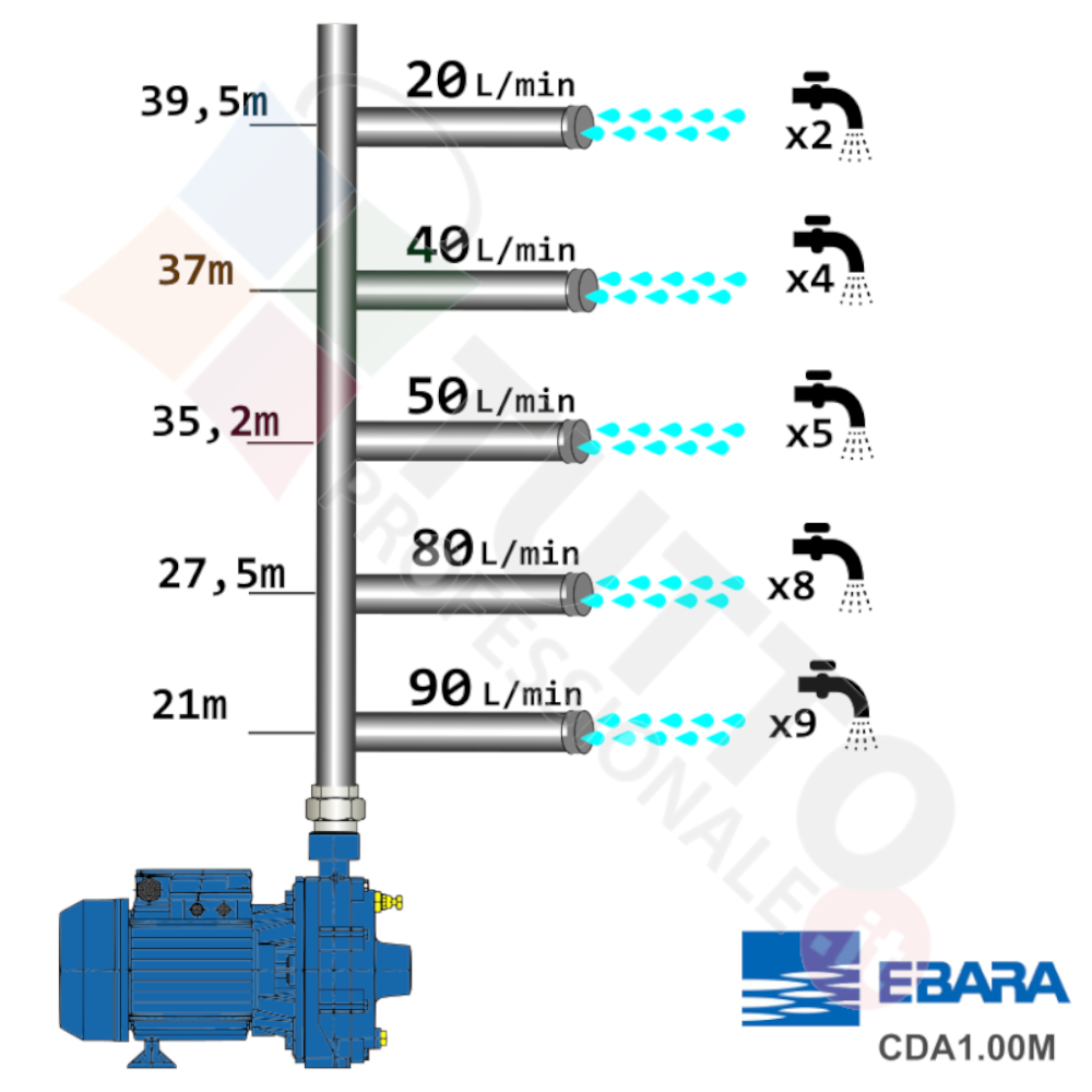 Il kit risolve tutti i problemi in cui abbiamo carenza d’acqua o poca pressione nell’impianto idrico. La pompa CDA/I 100 è realizzata dalla rinomata azienda Ebara, è un’elettropompa centrifuga bigirante di superficie utilizzata per pompare acqua pulita. Garantisce elevati rendimenti e adattabilità alle più svariate applicazioni. Viene utilizzata nel settore domestico, civile, industriale e in particolare per la distribuzione dell’acqua in accoppiamento con sistemi come serbatoi, autoclave, presscontrol o altri sistemi per il controllo della pressione da erogare.