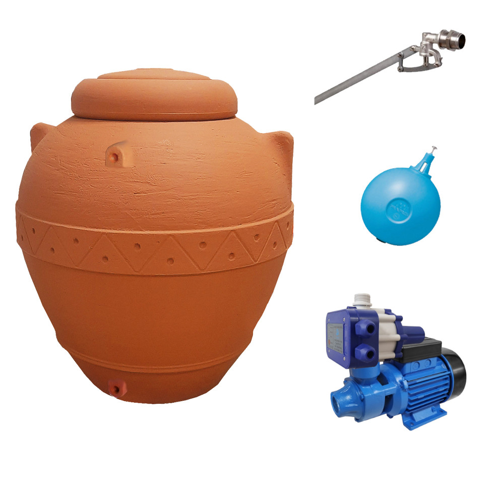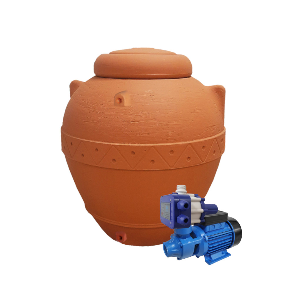 Il serbatoio orcio da 500 litri, di colore terracotta, è dotato di galleggiante e sfera, perfetto per accumulare acqua da utilizzare ad uso alimentare, per irrigare orti, giardini o lavare l’auto. La cisterna, realizzata in polietilene alimentare, è resistente alle condizioni ambientali, con garanzia al 100% contro la formazione di alghe. Progettata per resistere a temperature comprese tra -10°C e +50°C, è idonea al contenimento di liquidi alimentari come acqua potabile. In aggiunta è indicata per utilizzi esterni fuori terra.