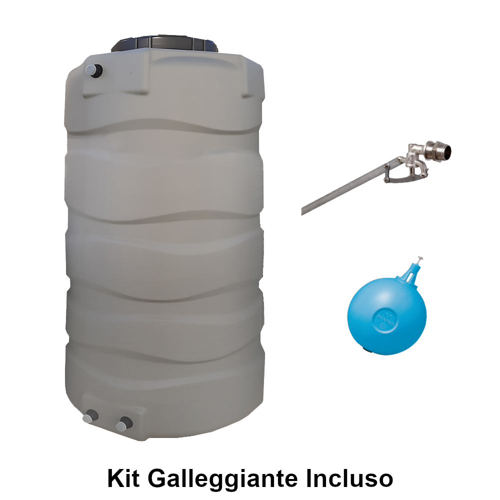 Il serbatoio verticale da 750 litri, di colore grigio, è dotato di galleggiante e sfera, ideale per accumulare acqua per irrigare orti o giardini, oltre che per il lavaggio auto. La sua resistenza alle condizioni ambientali, con garanzia al 100% contro la formazione di alghe, lo rende adatto all’uso esterno. Inoltre, è progettato per resistere a temperature comprese tra -10°C e +50°C.