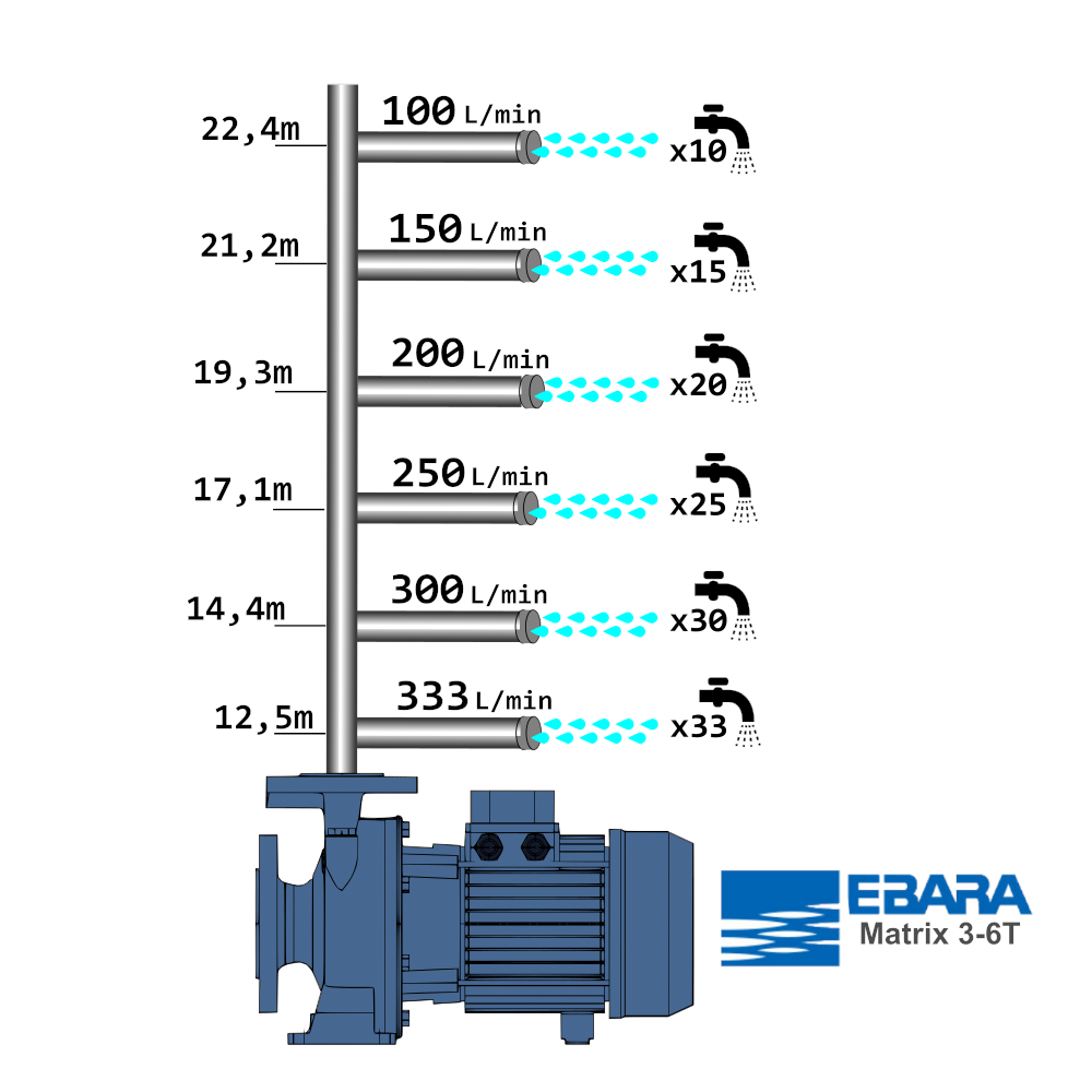 Il suo utilizzo può essere in modo singolare o affiancata ad una pompa equivalente, formando un gruppo pompa. La tensione della pompa normalizzata è monofase, garantisce ha una potenza in cavalli di 1,50hp. Internamente possiede una girante in acciaio INOX AISI 304, il corpo pompa è in ghisa ed albero anche esso in acciaio inox.