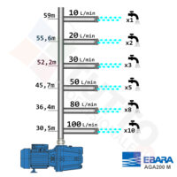 Questa elettropompa serve a spingere l’acqua nell’impianto idrico. Le elettropompe AGA/E IE2 200 M sono ideate e realizzate da EBARA. Sono utilizzate esclusivamente per pompare acqua pulite e chimicamente non aggressive. Trova vasto impiego nell’uso domestico, utilizzata per aumentare la pressione dell’acqua della vostra casa o altra abitazione, per il giardinaggio e quindi per irrigazione di orti, giardini, serre, prati ed altre applicazioni simili. La pompa è ideale quindi per aumentare la pressione in modo ottimale e costante, accoppiandola ad esempio ad alcuni presscontrol, piccoli serbatoi autoclavi o altri sistemi per il controllo della pressione da erogare. La pompa autoadescante ha la particolarità di aspirare l’aria contenuta nel tubo di aspirazione, questo accade grazie al movimento rotatorio della giranti che creano una forte turbolenza nel liquido contenuto all’interno del corpo pompa, e genera a sua volta una depressione risucchiando l’aria in essa contenuta. La girante al suo interno mentre è in funzione aspira l’acqua dal tubo di aspirazione e trasferiscono all’acqua stessa l’energia generata dal loro movimento. Nel corpo pompa, dove si muove l’acqua spinta dalla forza generata dalla girante, avviene l’aumento della pressione dell’acqua e viene espulsa con pressione elevata dalla bocca di uscita.