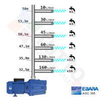 L’elettropompa AGC/B 3,00 T IE3 serve a far circolare con un’ottima pressione l’acqua all’interno dell’impianto idrico. Le elettropompe AGC 300 T sono ideate e realizzate da EBARA. Sono utilizzate esclusivamente per pompare acqua pulite e chimicamente non aggressive. Trova vasto impiego nell’uso domestico, utilizzata per aumentare la pressione dell’acqua della vostra casa o altra abitazione, per il giardinaggio e quindi per irrigazione di orti, giardini, serre, prati ed altre applicazioni simili. La pompa è ideale quindi per aumentare la pressione in modo ottimale e costante, accoppiandola ad esempio ad alcuni presscontrol, piccoli serbatoi autoclavi o altri sistemi per il controllo della pressione da erogare. La pompa autoadescante ha la particolarità di aspirare l’aria contenuta nel tubo di aspirazione, questo accade grazie al movimento rotatorio della giranti che creano una forte turbolenza nel liquido contenuto all’interno del corpo pompa, e genera a sua volta una depressione risucchiando l’aria in essa contenuta. La girante al suo interno mentre è in funzione aspira l’acqua dal tubo di aspirazione e trasferiscono all’acqua stessa l’energia generata dal loro movimento. Nel corpo pompa, dove si muove l’acqua spinta dalla forza generata dalla girante, avviene l’aumento della pressione dell’acqua e viene espulsa con pressione elevata dalla bocca di uscita.