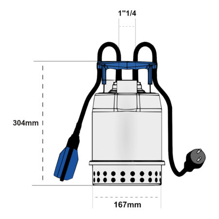 L’alimentazione della pompa per drenaggio è di tipo monofase ed ha una potenza in cavalli di 0,75hp. La temperatura del liquido da pompare supportata è fino a +50°C. L’elettropompa sommergibile per acque chiare è realizzata con idraulica in acciaio inossidabile AISI 304. Il corpo pompa, la griglia aspirazione il disco porta tenuta e cassa motore sono realizzati anche essi in AISI 304. Oltre a questi componenti abbiamo la girante anche essa in acciaio inox AISI 304, e si differenzia quindi dal modello Optima con girante in PPE. L’albero motore è realizzato invece in acciaio INOX 303. Tutti i materiali utilizzati garantiscono una lunga durata e resistenza nel tempo della pompa stessa. Per ulteriori informazioni consultare la scheda tecnica della pompa.