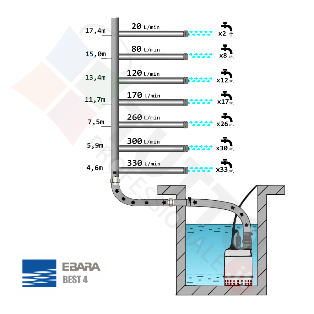 Pompa utilizzata per effettuare il drenaggio di acque chiare o leggermente sporche. La serie BEST 4 M dell’azienda Ebara è realizzata per essere utilizzata in ambito domestico per effettuare drenaggio liquidi con corpi solidi fino a 10mm di diametro. Quindi trova ottimo impiego in allagamenti di piccoli ambienti come scantinati, locali, box. In aggiunta è usata per lo svuotamento di pozzetti di raccolta e smaltimento di acque domestiche usate come quelle prodotte da lavastoviglie, lavatrici ed altri elettrodomestici.