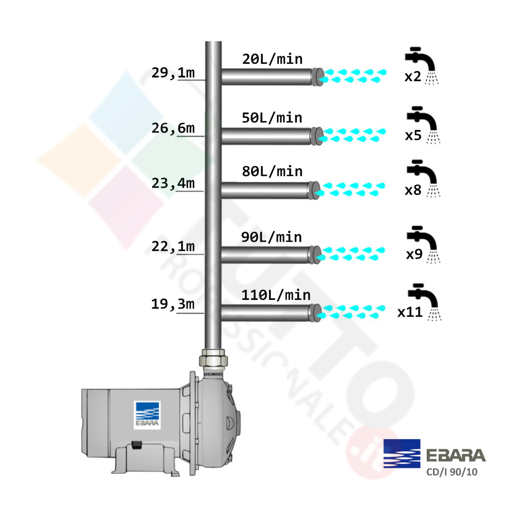 La pompa è ideale quindi per aumentare la pressione in modo ottimale e costante, accoppiandola ad esempio ad alcuni presscontrol, piccoli serbatoi autoclavi o altri sistemi per il controllo della pressione da erogare.