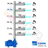 Questa elettropompa serve a spingere l’acqua nell’impianto idrico. La pompa CDA/E 150 M IE2 è realizzata dalla rinomata azienda Ebara, è un’elettropompa centrifuga bigirante di superficie utilizzata per pompare acqua pulita. Garantisce elevati rendimenti e adattabilità alle più svariate applicazioni. Viene utilizzata nel settore domestico, civile, industriale e in particolare per la distribuzione dell’acqua in accoppiamento con sistemi come serbatoi, autoclave, presscontrol o altri sistemi per il controllo della pressione da erogare. Il suo funzionamento avviene grazie ad una doppia girante interna che girando vanno ad aspirare l’acqua dal tubo di aspirazione e trasferiscono all’acqua stessa l’energia generata dal loro movimento. Nel corpo pompa, dove si muove l’acqua spinta dalla forza generata dalle giranti, avviene l’aumento della pressione dell’acqua e viene espulsa con pressione elevata dalla bocca di uscita. Questa pompa bigirante centrifuga funziona grazie alla tensione monofase, ha una potenza in cavalli di 2,00hp e la temperatura del liquido da pompare massima è di 90 °C. Il corpo pompa è realizzato in ghisa ed internamente possiede girante in PPE+PS rinforzato con fibre di vetro e albero motore in acciaio inox, quindi tutti materiali particolarmente indicati per il corretto ed affidabile utilizzato dell’elettropompa, garantendo ottimo funzionamento e lunga durata nel tempo. L’installazione va effettuata in luoghi chiusi ben arieggiati o comunque protetti dalle intemperie in quanto la sua protezione certificata è di tipo IPX4.Per ulteriori informazioni tecniche consultare la scheda tecnica della pompa.