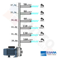 Questa elettropompa serve ad ottenere una pressione ottimale dell’acqua nel vostro impianto. La pompa CDXM/B 120/20 realizzata da Ebara è di tipo superficie appartenente alla famiglia delle pompe centrifughe monogiranti. Questa pompa centrifuga viene utilizzata in molteplici applicazioni per il pompaggio di acque pulite. Il suo utilizzo può essere di tipo domestico, industriale e agricolo. Una pompa centrifuga è composta da una parte mobile detta girante, essa girando aspira l’acqua dal tubo di aspirazione e trasferisce all’acqua stessa l’energia generata dal suo movimento. Nel corpo pompa, dove si muove l’acqua spinta dalla forza generata dalla girante, avviene l’aumento della pressione dell’acqua e viene espulsa con pressione elevata dalla bocca di uscita. Questa elettropompa centrifuga risulta molto utile per aumentare quindi la pressione della vostra casa o altra abitazione, ma è anche indicata per uso industriale e quindi ideale ad un forte e continuo utilizzo, ed infinte risulta indicata anche per il giardinaggio e quindi per irrigazione di orti, giardini, serre, prati ed altre applicazioni simili.