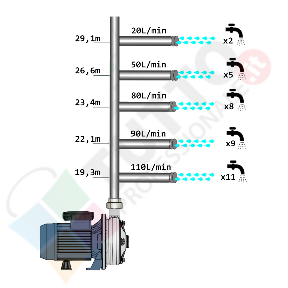 La pompa è ideale quindi per aumentare la pressione in modo ottimale e costante, accoppiandola ad esempio ad alcuni presscontrol, piccoli serbatoi autoclave o altri sistemi per il controllo della pressione da erogare.