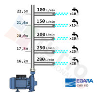 Questa elettropompa serve a spingere l’acqua nell’impianto idrico. La pompa CMB/I 1.50 T IE3 è realizzata dalla rinomata azienda Ebara, è una elettropompa di superficie appartenente alla famiglia delle pompe centrifughe ed è utilizzata per acque pulite. Il suo utilizzo può essere di tipo domestico, civile e agricolo. Una pompa centrifuga è composta da una parte mobile detta girante, essa girando aspira l’acqua dal tubo di aspirazione e trasferisce all’acqua stessa l’energia generata dal suo movimento. Nel corpo pompa, dove si muove l’acqua spinta dalla forza generata dalla girante, avviene l’aumento della pressione dell’acqua e viene espulsa con pressione elevata dalla bocca di uscita. Questa elettropompa centrifuga risulta molto utile per aumentare quindi la pressione della vostra casa o altra abitazione ed infinte risulta indicata anche per il giardinaggio e quindi per irrigazione di orti, giardini, serre, prati ed altre applicazioni simili. La pompa è ideale quindi per aumentare la pressione in modo ottimale e costante, accoppiandola ad esempio ad alcuni presscontrol, piccoli serbatoi autoclavi o altri sistemi per il controllo della pressione da erogare. Parlando della pompa centrifuga in questione evidenziamo subito che va alimentata con una tensione trifase, ha una potenza in cavalli di 1.50 hp e la temperatura del liquido da pompare massima è di +40 °C. Il corpo pompa è realizzato in ghisa ed internamente possiede una girante in ghisa e albero motore AISI 303 quindi tutti materiali particolarmente indicati per il corretto ed affidabile utilizzato dell’elettropompa, garantendo ottima resa e lunga durata nel tempo. L’installazione va effettuata in luoghi chiusi ben arieggiati o comunque protetti dalle intemperie in quanto la sua protezione certificata è di tipo IP44.Per ulteriori informazioni tecniche consultare la scheda tecnica della pompa.