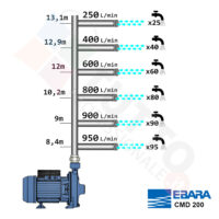 Questa elettropompa serve a spingere l’acqua nell’impianto idrico. La pompa CMD/A 2.00 M è realizzata dalla rinomata azienda Ebara, è una elettropompa di superficie appartenente alla famiglia delle pompe centrifughe. Viene utilizzata in molteplici applicazioni per il pompaggio di acque pulite. Il suo utilizzo può essere di tipo domestico, civile e agricolo. Una pompa centrifuga è composta da una parte mobile detta girante, essa girando aspira l’acqua dal tubo di aspirazione e trasferisce all’acqua stessa l’energia generata dal suo movimento. Nel corpo pompa, dove si muove l’acqua spinta dalla forza generata dalla girante, avviene l’aumento della pressione dell’acqua e viene espulsa con pressione elevata dalla bocca di uscita. Questa elettropompa centrifuga risulta molto utile per aumentare quindi la pressione della vostra casa o altra abitazione ed infine risulta indicata anche per il giardinaggio e quindi per irrigazione di orti, giardini, serre, prati ed altre applicazioni simili. La pompa è ideale quindi per aumentare la pressione in modo ottimale e costante, accoppiandola ad esempio ad alcuni presscontrol, piccoli serbatoi autoclavi o altri sistemi per il controllo della pressione da erogare. Parlando della pompa centrifuga in questione evidenziamo subito che va alimentata con una tensione monofase, ha una potenza in cavalli di 2.00 hp e la temperatura del liquido da pompare massima è di +40 °C. Il corpo pompa è realizzato in ghisa ed internamente possiede una girante in ghisa e albero motore AISI 304 quindi tutti materiali particolarmente indicati per il corretto ed affidabile utilizzato dell’elettropompa, garantendo ottima resa e lunga durata nel tempo. L’installazione va effettuata in luoghi chiusi ben arieggiati o comunque protetti dalle intemperie in quanto la sua protezione certificata è di tipo IP44.Per ulteriori informazioni tecniche consultare la scheda tecnica della pompa.