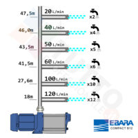 Questa elettropompa serve a spingere l’acqua nell’impianto idrico. La pompa COMPACT BM12, realizzata dalla rinomata azienda Ebara, è un’elettropompa di superficie appartenente alla famiglia delle pompe centrifughe multigiranti silenziose. La pompa in questione grazie alla sua estrema affidabilità e silenziosità trova un vasto impiego per uso domestico, utile quindi per aumentare la pressione dell’acqua della vostra casa o altra abitazione e risulta indicata anche per il giardinaggio e quindi per irrigazione di orti, giardini, serre, prati ed altre applicazioni simili. La pompa è ideale quindi per aumentare la pressione in modo ottimale e costante, accoppiandola ad esempio ad alcuni presscontrol, piccoli serbatoi autoclavi o altri sistemi per il controllo della pressione da erogare. Essendo una pompa multigirante il rumore generato è molto basso, al suo interno troviamo più parti mobili dette appunto giranti, esse girando aspirando l’acqua dal tubo di aspirazione e trasferiscono all’acqua stessa l’energia generata dal loro movimento. Nel corpo pompa, dove si muove l’acqua spinta dalla forza generata dalle giranti, avviene l’aumento della pressione dell’acqua e viene espulsa con pressione elevata dalla bocca di uscita. Parlando della pompa centrifuga in questione evidenziamo subito che va alimentata con una tensione monofase, ha una potenza in cavalli di 1,2 hp e la temperatura del liquido da pompare massima è di 40°C.Il corpo pompa è realizzato in ghisa ed internamente possiede girante in PPE+PS rinforzato con fibre di vetro, albero motore in AISI 416, quindi tutti materiali particolarmente indicati per il corretto ed affidabile utilizzato dell’elettropompa, garantendo ottimo funzionamento e lunga durata nel tempo. L’installazione va effettuata in luoghi chiusi ben arieggiati o comunque protetti dalle intemperie in quanto la sua protezione certificata è di tipo IP44.Per ulteriori informazioni tecniche consultare la scheda tecnica della pompa.
