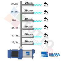 Questa pompa serve per spingere l’acqua nell’impianto idrico. Questo modello realizzato da EBARA è molto silenziosa e per questo viene usata per uso domestico, utile quindi per aumentare la pressione dell’acqua della vostra casa o altra abitazione e risulta indicata anche per il giardinaggio e quindi per irrigazione di orti, giardini, serre, prati ed altre applicazioni simili. La pompa è ideale quindi per aumentare la pressione in modo ottimale e costante, accoppiandola ad esempio ad alcuni presscontrol, piccoli serbatoi autoclavi o altri sistemi per il controllo della pressione da erogare. Essendo una pompa multigirante il rumore generato è molto basso, al suo interno troviamo più parti mobili dette appunto giranti, esse girando aspirando l’acqua dal tubo di aspirazione e trasferiscono all’acqua stessa l’energia generata dal loro movimento. Nel corpo pompa, dove si muove l’acqua spinta dalla forza generata dalle giranti, avviene l’aumento della pressione dell’acqua e viene espulsa con pressione elevata dalla bocca di uscita.