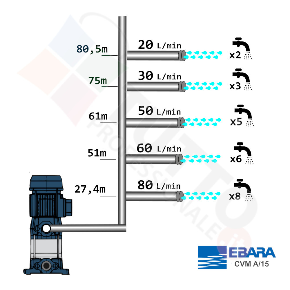 La pompa da superficie CVM/L A/15 IE3 realizzata dall’azienda Italiana Ebara e serve a far circolare con pressione ottimale l’acqua nell’impianto idrico. Fa parte della famiglia di elettropompe centrifughe multistadio verticali e possiede fino a 8 stadi al suo interno. La pompa autoclave multistadio grazie ai suoi elevati rendimenti è utilizzata per pompare acqua liquidi non aggressivi in diversi ambienti. Infatti è utilizzata in ambiente domestico come la vostra casa, locale, garage e altri utilizzi simili e nulla toglie che può essere usata anche nel campo agricolo per serre, orti, giardini, irrigazione e applicazioni simili. Può essere usata anche per uso industriale e quindi sottoposta a continuo utilizzo.