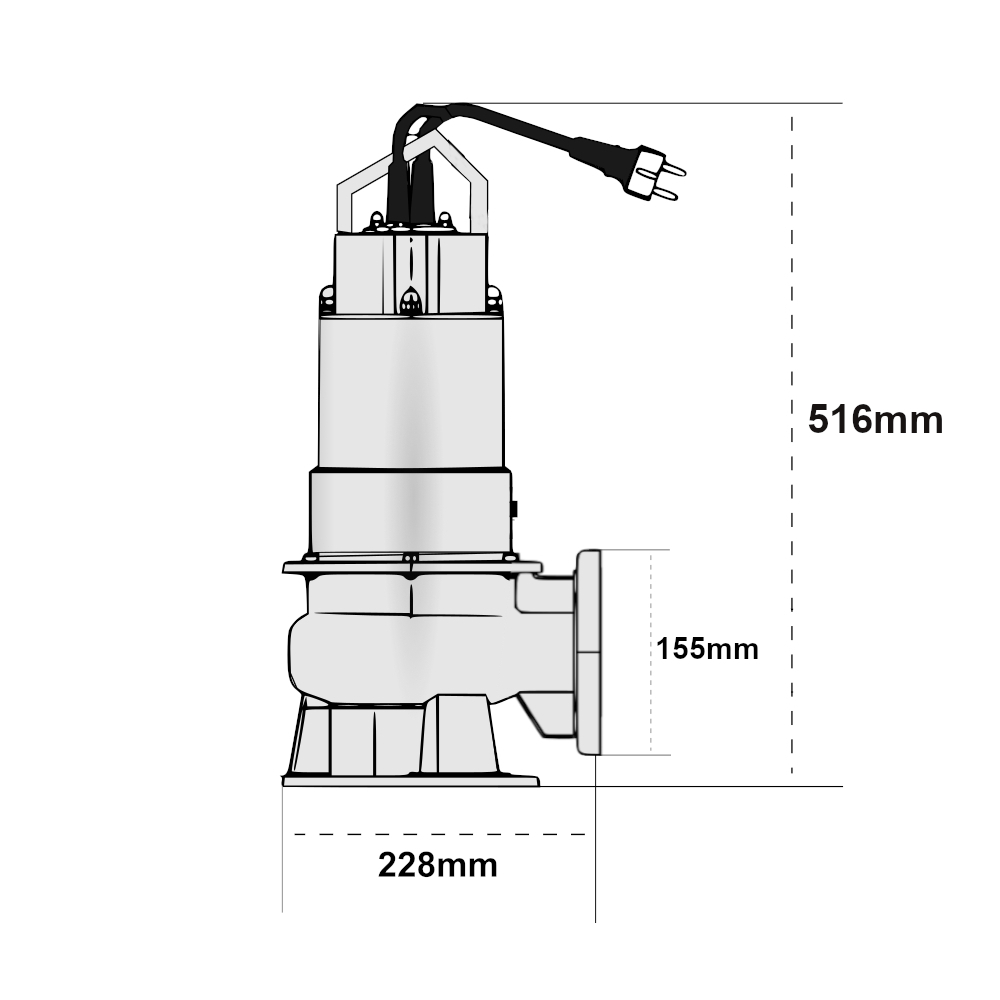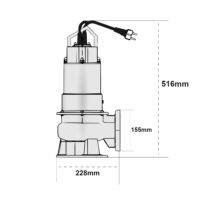 L’elettropompa per fogna è dotata di flangia ed ha il corpo pompa, girante, coperchio motore, disco porta tenuta e cassa motore in acciaio inox AISI 304, mentre l’albero in AISI 303.