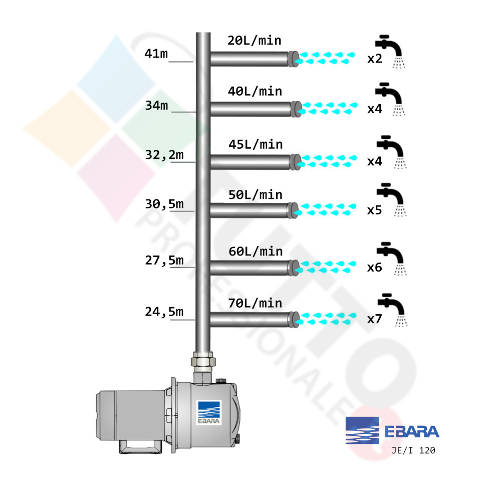 La pompa farà circolare ad un ottima pressione l’acqua nel vostro impianto idrico. Dite addio ai cali di pressione mentre usate l’acqua della vostra abitazione. La pompa JE IE3 è realizzata da Ebara, una delle migliori aziende di produzione dell’elettropompe. La pompa è una centrifuga autoadescante, ed ha la particolarità di aspirare l’aria contenuta nel tubo di aspirazione. Questo accade grazie al movimento rotatorio della giranti associato ad un kit chiamato Venturi (realizzato esclusivamente da Ebara). Questi 2 componenti creano una forte turbolenza nel liquido contenuto all’interno del corpo pompa, e genera a sua volta una depressione risucchiando l’aria in essa contenuta.