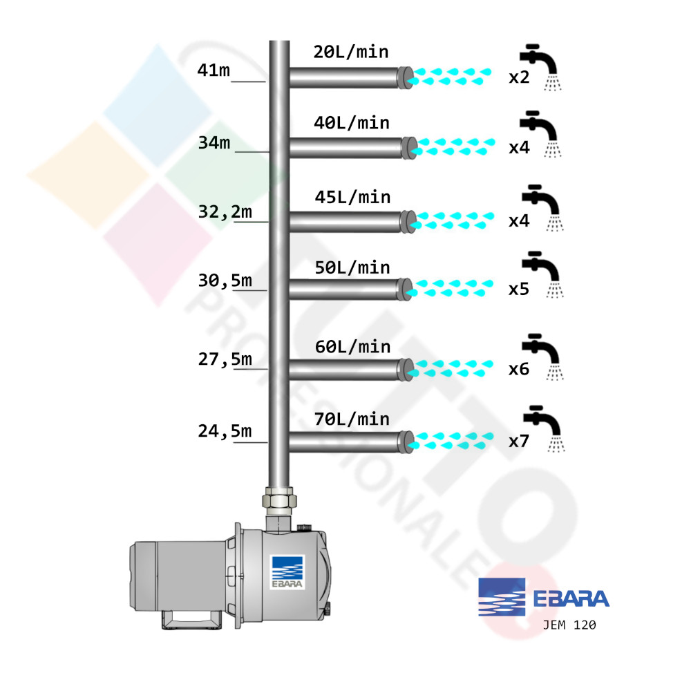La pompa farà circolare ad un ottima pressione l’acqua nel vostro impianto idrico. Dite addio ai cali di pressione mentre usate l’acqua della vostra abitazione. La pompa JE IE2 è realizzata da Ebara, una delle migliori aziende di produzione dell’elettropompe. La pompa è una centrifuga autoadescante, ed ha la particolarità di aspirare l’aria contenuta nel tubo di aspirazione. Questo accade grazie al movimento rotatorio della giranti associato ad un kit chiamato Venturi (realizzato esclusivamente da Ebara). Questi 2 componenti creano una forte turbolenza nel liquido contenuto all’interno del corpo pompa, e genera a sua volta una depressione risucchiando l’aria in essa contenuta.