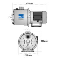 L’alimentazione è di tipo monofase a 230V – 50HZ, quindi con condensatore già installato all’interno. La potenza in cavalli è di 1,20hp, mentre l’assorbimento è di 0,90kw.