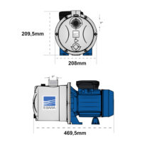 L’alimentazione è di tipo monofase 230V – 50HZ. La potenza in cavalli è di 1,75hp, mentre l’assorbimento è di 1,30kw. L’elettropompa ha corpo pompa in ghisa e acciaio inox ed albero motore anche esso in acciaio INOX. La tenuta meccanica è in Ceramica Carbone e NBR e la girante è in acciaio AISI 303. Per l’installazione è obbligatorio effettuarla in un luogo chiuso o perlomeno coperto dalle intemperie, in quanto la pompa offre una protezione IP54. Per ulteriori informazioni consultare la scheda tecnica del prodotto.