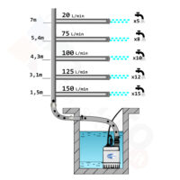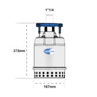 L’alimentazione della pompa per drenaggio è monofase, ha una potenza in cavalli di 0,33hp e la temperatura del liquido da pompare supportata è fino a +50°C. L’elettropompa sommergibile per acque chiare è realizzata con idraulica in acciaio inossidabile AISI 304. Il corpo pompa, griglia aspirazione, disco porta tenuta e cassa motore sono in AISI 304, Girante in PPE + PS rinforzato con fibre di vetro, e albero in AISI 303. Tutti materiali utilizzati per garantire una lunga durata e resistenza nel tempo della pompa stessa.