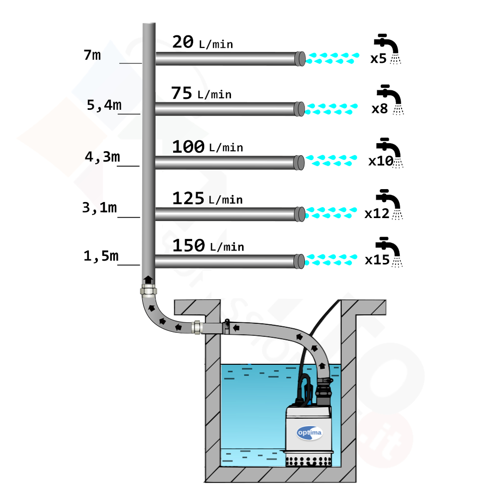 Pompa utilizzata per effettuare il drenaggio di acque chiare senza particelle abrasive. La serie OPTIMA dell’azienda Ebara è realizzata per essere utilizzata in ambito domestico per effettuare drenaggio liquidi con corpi solidi fino a 10mm di diametro.. Trova ottimo impiego in allagamenti di piccoli ambienti come scantinati, locali, box. In aggiunta è usata per lo svuotamento di pozzetti di raccolta e smaltimento di acque domestiche usate come quelle prodotte da lavastoviglie, lavatrici.