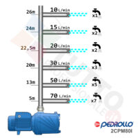 Questa elettropompa serve a spingere l’acqua nell’impianto idrico. La pompa 2CPm80I con giranti in acciaio INOX, realizzata dalla rinomata azienda italiana Pedrollo, è un’elettropompa di superficie appartenente alla famiglia delle pompe centrifughe multigiranti silenziose. La pompa in questione grazie alla sua estrema affidabilità e silenziosità trova un vasto impiego per uso domestico, utile quindi per aumentare la pressione dell’acqua della vostra casa o altra abitazione e risulta indicata anche per il giardinaggio e quindi per irrigazione di orti, giardini, serre, prati ed altre applicazioni simili. La pompa è ideale quindi per aumentare la pressione in modo ottimale e costante, accoppiandola ad esempio ad alcuni presscontrol, piccoli serbatoi autoclavi o altri sistemi per il controllo della pressione da erogare.Essendo una pompa multigirante il rumore generato è molto basso, al suo interno troviamo più parti mobili dette appunto giranti, esse girando aspirando l’acqua dal tubo di aspirazione e trasferiscono all’acqua stessa l’energia generata dal loro movimento. Nel corpo pompa, dove si muove l’acqua spinta dalla forza generata dalle giranti, avviene l’aumento della pressione dell’acqua e viene espulsa con pressione elevata dalla bocca di uscita.Parlando della pompa centrifuga in questione evidenziamo subito che va alimentata con una tensione monofase, ha una potenza in cavalli di 0,5 hp e la temperatura del liquido da pompare va da da -10 °C fino a +90 °C.Il corpo pompa è realizzato in ghisa ed internamente possiede girante e albero motore in acciaio inox, quindi tutti materiali particolarmente indicati per il corretto ed affidabile utilizzato dell’elettropompa, garantendo ottimo funzionamento e lunga durata nel tempo. L’installazione va effettuata in luoghi chiusi ben arieggiati o comunque protetti dalle intemperie in quanto la sua protezione certificata è di tipo IPX4.Per ulteriori informazioni tecniche consultare la scheda tecnica della pompa.
