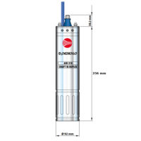La pompa sommersa 4SRm 8/4 completa di motore e girante, serve a spingere l’acqua nell’impianto idrico a pressione elevata. L’elettropompa va ed esempio installata in pozzi o cisterne di medio alta profondità contenenti acqua pulita, con contenuto di sabbia non superiore a 150 g/m3. Il materiale della pompa garantisce una lunga durata nel tempo, realizzata prevalentemente in acciaio INOX 304, rinomato per le sue caratteristiche uniche di resistenza alla corrosione. La pompa è composta da motore e girante, dispongono della flangia universale NEMA per permettere l’assemblaggio dei 2 pezzi formando una pompa completa.