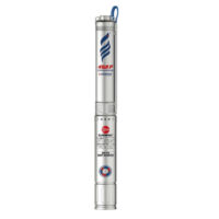 La pompa sommersa 4SRm 8/9 F completa di motore e girante, serve a spingere l’acqua nell’impianto idrico a pressione elevata. L’elettropompa va ed esempio installata in pozzi o cisterne di medio alta profondità contenenti acqua pulita, con contenuto di sabbia non superiore a 150 g/m3. Il materiale della pompa garantisce una lunga durata nel tempo, realizzata prevalentemente in acciaio INOX 304, rinomato per le sue caratteristiche uniche di resistenza alla corrosione. La pompa è composta da motore e girante, dispongono della flangia universale NEMA per permettere l’assemblaggio dei 2 pezzi formando una pompa completa.