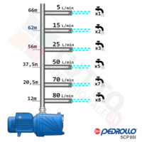 Questa elettropompa serve a spingere l’acqua nell’impianto idrico. La pompa 5CP80I con giranti in acciaio INOX, realizzata dalla rinomata azienda italiana Pedrollo, è un’elettropompa di superficie appartenente alla famiglia delle pompe centrifughe multigiranti silenziose. La pompa in questione grazie alla sua estrema affidabilità e silenziosità trova un vasto impiego per uso domestico, utile quindi per aumentare la pressione dell’acqua della vostra casa o altra abitazione e risulta indicata anche per il giardinaggio e quindi per irrigazione di orti, giardini, serre, prati ed altre applicazioni simili. La pompa è ideale quindi per aumentare la pressione in modo ottimale e costante, accoppiandola ad esempio ad alcuni presscontrol, piccoli serbatoi autoclavi o altri sistemi per il controllo della pressione da erogare.Essendo una pompa multigirante il rumore generato è molto basso, al suo interno troviamo più parti mobili dette appunto giranti, esse girando aspirando l’acqua dal tubo di aspirazione e trasferiscono all’acqua stessa l’energia generata dal loro movimento. Nel corpo pompa, dove si muove l’acqua spinta dalla forza generata dalle giranti, avviene l’aumento della pressione dell’acqua e viene espulsa con pressione elevata dalla bocca di uscita.Parlando della pompa centrifuga in questione evidenziamo subito che va alimentata con una tensione trifase, ha una potenza in cavalli di 1,00 hp e la temperatura del liquido da pompare va da da -10 °C fino a +90 °C.Il corpo pompa è realizzato in ghisa ed internamente possiede girante e albero motore in acciaio inox, quindi tutti materiali particolarmente indicati per il corretto ed affidabile utilizzato dell’elettropompa, garantendo ottimo funzionamento e lunga durata nel tempo. L’installazione va effettuata in luoghi chiusi ben arieggiati o comunque protetti dalle intemperie in quanto la sua protezione certificata è di tipo IPX4.Per ulteriori informazioni tecniche consultare la scheda tecnica della pompa.