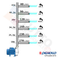 Questa elettropompa serve a spingere l’acqua nell’impianto idrico. La pompa CPm200-ST4 in acciaio INOX, realizzata dalla rinomata azienda italiana Pedrollo, è una elettropompa di superficie appartenente alla famiglia delle pompe centrifughe. Questa pompa centrifuga viene utilizzata in molteplici applicazioni per il pompaggio di acque pulite. Il suo utilizzo può essere di tipo domestico, industriale e agricolo. Una pompa centrifuga è composta da una parte mobile detta girante, essa girando aspira l’acqua dal tubo di aspirazione e trasferisce all’acqua stessa l’energia generata dal suo movimento. Nel corpo pompa, dove si muove l’acqua spinta dalla forza generata dalla girante, avviene l’aumento della pressione dell’acqua e viene espulsa con pressione elevata dalla bocca di uscita.Questa elettropompa centrifuga risulta molto utile per aumentare quindi la pressione della vostra casa o altra abitazione, ma è anche indicata per uso industriale e quindi ideale ad un forte e continuo utilizzo, ed infinte risulta indicata anche per il giardinaggio e quindi per irrigazione di orti, giardini, serre, prati ed altre applicazioni simili. La pompa è ideale quindi per aumentare la pressione in modo ottimale e costante, accoppiandola ad esempio ad alcuni presscontrol, piccoli serbatoi autoclavi o altri sistemi per il controllo della pressione da erogare.Parlando della pompa centrifuga in questione evidenziamo subito che va alimentata con una tensione monofase, ha una potenza in cavalli di 3 hp e la temperatura del liquido da pompare va da da -10 °C fino a +90 °C.Il corpo pompa è realizzato in Acciaio Inox ed internamente possiede una girante e un albero motore anche essi in acciaio inox, quindi tutti materiali particolarmente indicati per il corretto ed affidabile utilizzato dell’elettropompa, garantendo ottima resa e lunga durata nel tempo. L’installazione va effettuata in luoghi chiusi ben arieggiati o comunque protetti dalle intemperie in quanto la sua protezione certificata è di tipo IPX5.Per ulteriori informazioni tecniche consultare la scheda tecnica della pompa.