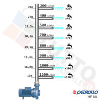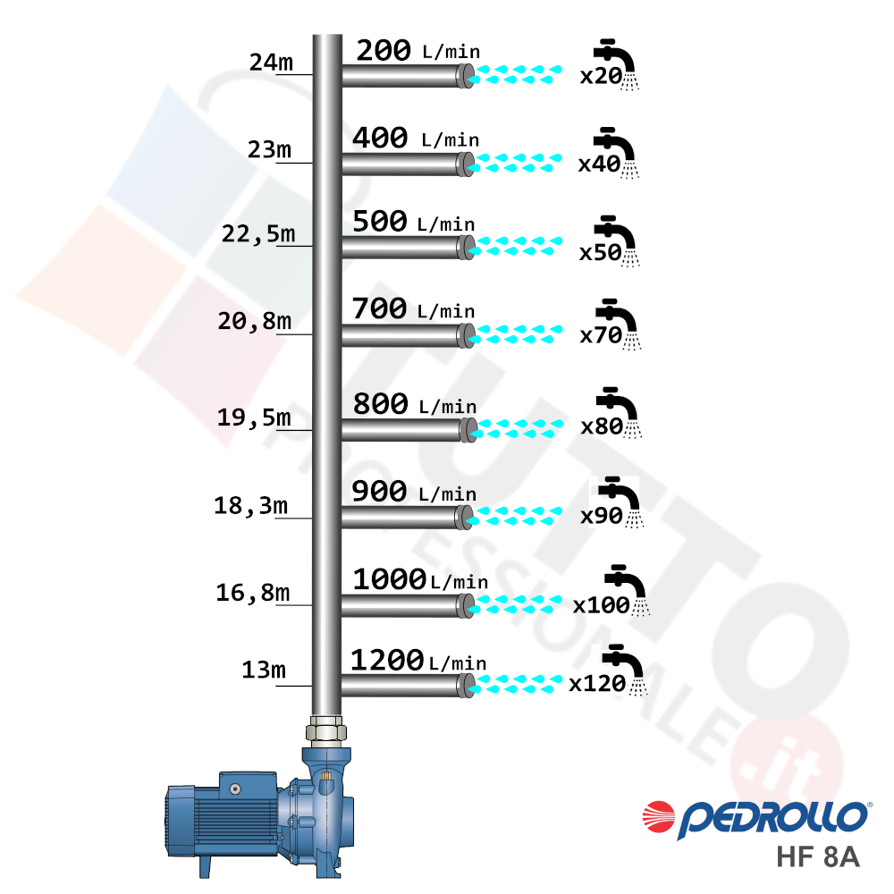 Questa elettropompa serve a spingere l’acqua nell’impianto idrico. La pompa Pedrollo HF 8A è realizzata dalla rinomata azienda Italiana Pedrollo. La pompa di superficie centrifuga viene utilizzata in ambiente civile ed agricolo. Grazie alla sua estrema affidabilità trova un vasto impiego per uso industriali e quindi predisposta per essere sottoposta a continuo utilizzo, utilizzandola ad esempio per irrigazioni a scorrimento pioggia, per prelievo d’acqua da laghi, fiumi, pozzi o altri utilizzi simili. Nulla toglie però che può avere un ottimo impiego per il giardinaggio e quindi per irrigazione di orti, giardini, serre, prati ed altre applicazioni simili. Un’ elettropompa centrifuga è composta da una parte mobile detta girante, essa girando aspira l’acqua dal tubo di aspirazione e trasferisce all’acqua stessa l’energia generata dal suo movimento. Nel corpo pompa, dove si muove l’acqua spinta dalla forza generata dalla girante, avviene l’aumento della pressione dell’acqua e viene espulsa con pressione elevata dalla bocca di uscita.