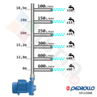 Questa elettropompa serve a spingere l’acqua nell’impianto idrico. La pompa Pedrollo HFm 5BM è realizzata dalla rinomata azienda Italiana Pedrollo. La pompa di superficie centrifuga viene utilizzata in ambiente civile ed agricolo. Grazie alla sua estrema affidabilità e silenziosità trova un vasto impiego per uso domestico, utile quindi per avere un ottimo aumento pressione dell’acqua nel vostro impianto idrico di casa o altra abitazione simile. La pompa è perfetta per i più svariati utilizzi industriali e quindi predisposta per essere sottoposta a continuo utilizzo, utilizzandola ad esempio per irrigazioni a scorrimento pioggia, per prelievo d’acqua da laghi, fiumi, pozzi o altri utilizzi simili. Nulla toglie però che può avere un ottimo impiego per il giardinaggio e quindi per irrigazione di orti, giardini, serre, prati ed altre applicazioni simili. Un’ elettropompa centrifuga è composta da una parte mobile detta girante, essa girando aspira l’acqua dal tubo di aspirazione e trasferisce all’acqua stessa l’energia generata dal suo movimento. Nel corpo pompa, dove si muove l’acqua spinta dalla forza generata dalla girante, avviene l’aumento della pressione dell’acqua e viene espulsa con pressione elevata dalla bocca di uscita.Questa pompa autoclave si alimenta con una tensione monofase, ha una potenza in cavalli di 1,5 hp la temperatura del liquido da pompare va da -10 °C fino a +90 °C e la temperatura ambiente supportata arriva fino a +40 °C. Il corpo elettropompa è realizzato in ghisa, coperchio e albero motore è realizzato in acciaio inox, girante è realizzata in ottone. Tutti materiali particolarmente indicati per il corretto ed affidabile utilizzato dell’elettropompa, garantendo ottimo funzionamento e lunga durata nel tempo. L’installazione va effettuata in luoghi chiusi ben arieggiati o comunque protetti dalle intemperie in quanto la sua protezione certificata è di tipo IPX4.Per ulteriori informazioni tecniche consultare la scheda tecnica della pompa.