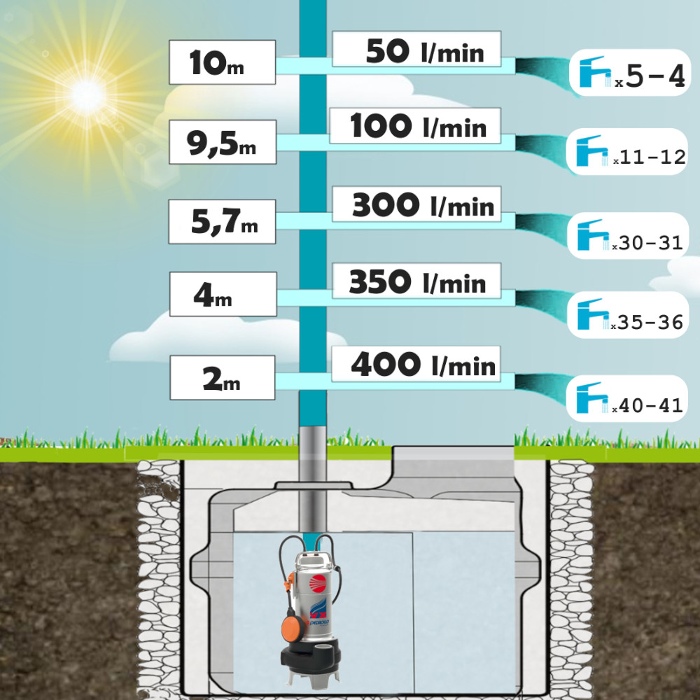 La pompa è utilizzata per acque sporche, fognatura, acque nere e molto cariche di corpi solidi. La pompa VX per acque reflue è realizzata dall’azienda Italiana Pedrollo. La pompa è dotata di galleggiante regolabile per l’accensione e lo spegnimento. Alla base ha uno spazio che indica la dimensione del corpo solito che può aspirare. Il modello ha la particolarità di avere l’uscita a 90° posto verso l’altro, e questo da un enorme vantaggio per l’utilizzo della pompa in spazi stretti.