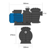 Ha inoltre al suo interno un kit autoadescante, quindi avrà la capacità di aspirare l’acqua anche in presenza di bolle d’aria nel tubo. Il motore dell’elettropompa per piscina è monofase 230V – 50Hz e la classe di isolamento è IPX5, quindi è resistente agli schizzi d’acqua.