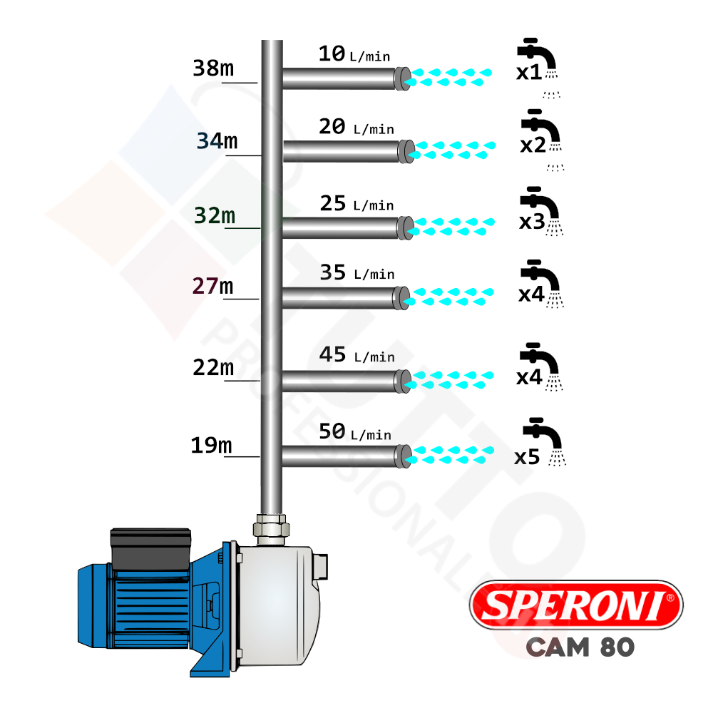Viene utilizzata per il pompaggio di acque pulite all’interno di impianti domestici o impianti di irrigazione. La pompa CAM 80-HL, realizzata dalla rinomata azienda Speroni, è ideale esclusivamente per pompare acqua pulite e chimicamente non aggressive. Trova vasto impiego nell’uso domestico e quindi utilizzata per aumentare la pressione dell’acqua della vostra casa o altra abitazione. Nulla toglie che può essere semplicemente per il giardinaggio e quindi per irrigazione di orti, giardini, serre, prati ed altre applicazioni simili.