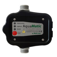 AQUAMATIC serve ad accendere l’elettropompa in maniera del tutto automatico.  Il Presscontrol garantisce un ottimo controllo automatico elettronico della vostra elettropompa fino ad 1.0hp, rappresenta la soluzione migliore per controllare la pressione dell’acqua emanata grazie al sistema made in italy di Matic. Il Presscontrol è tarato alla pressione di 2,2 bar e determina la partenza automatica della pompa mantenendo in pressione l’impianto. Regolatore di pressione intelligente, in quanto non solo fa ripartire la vostra pompa autoclave ad 2,2 bar, ma rileva la mancanza d’acqua in aspirazione dell’elettropompa bloccando subito il suo funzionamento e quindi proteggendo la pompa stessa da marcia a secco, visualizzando tramite un led rosso lo stato di “failure”. La camera d’aria del pressoflussostato è posta fra corpo idraulico e box scheda, rende immune il pressostato elettronico alla formazione di condensa dovuta alla differenza di temperatura tra ambiente e acqua pompata, salvando così eventuali corti circuiti e quindi rottura del presscontrol.