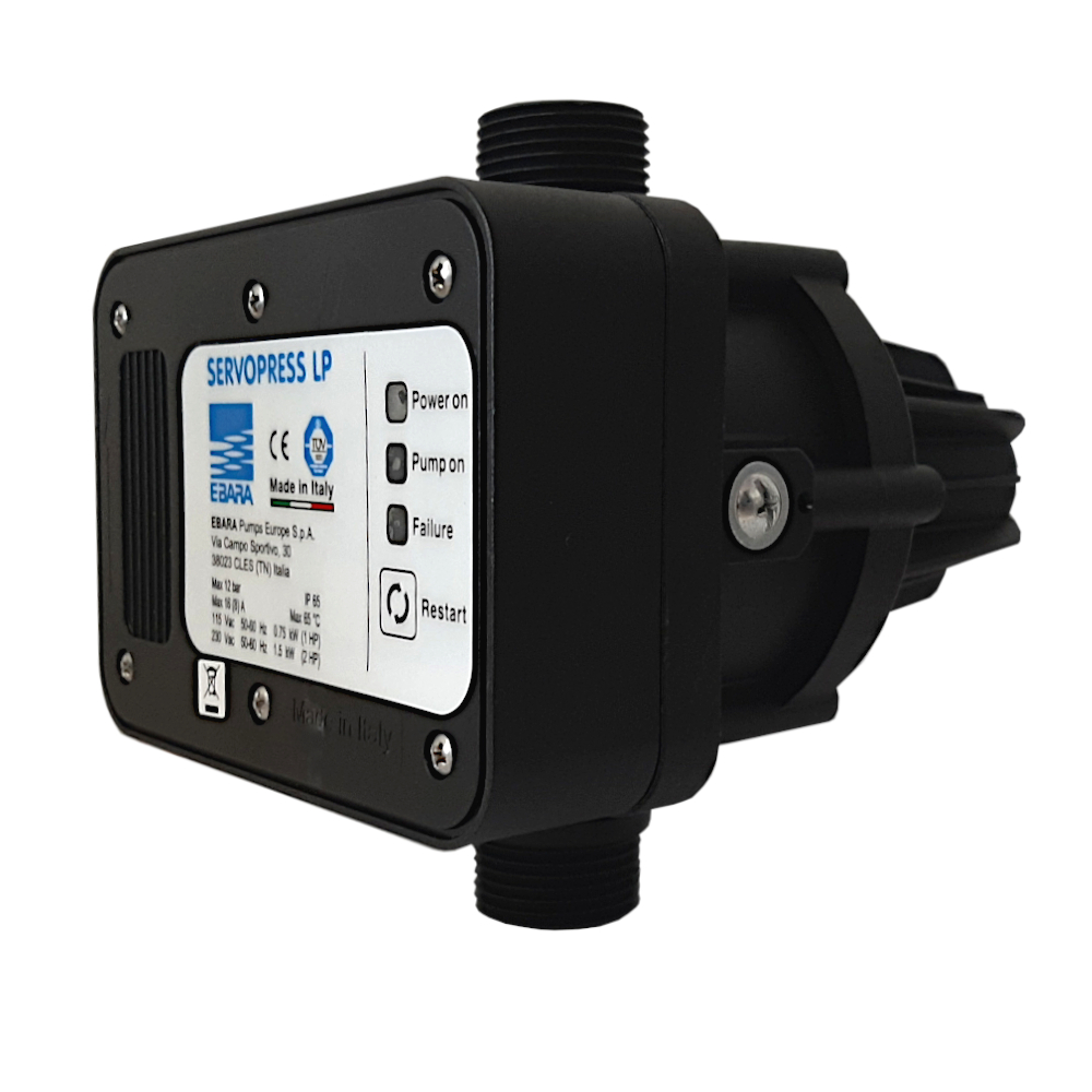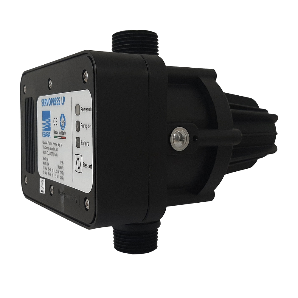 Il presscontrol ServoPress serve ad accendere l’elettropompa in maniera del tutto automatica. Il PressControl garantisce un ottimo controllo automatico elettronico della vostra elettropompa fino a 2,00hp. Ebara presenta questo prodotto come una delle migliori soluzioni per controllare la pressione dell’acqua emanata grazie al loro sistema Made In Italy. La taratura del presscontrol è di 1,5 bar, questo valore determina la partenza automatica della pompa mantenendo in pressione l’impianto.