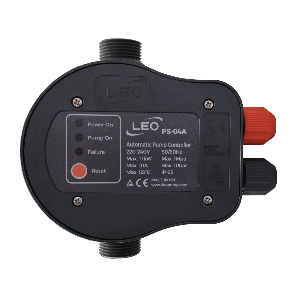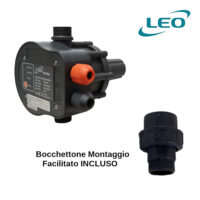 Il presscontrol leo PS04A15 serve ad accendere l’elettropompa in maniera del tutto automatico. Il Presscontrol garantisce un ottimo controllo automatico elettronico della vostra elettropompa fino ad 1.0hp, rappresenta la soluzione migliore per controllare la pressione dell’acqua emanata. Il Presscontrol ha come pressione di ripartenza di 1,5 bar e determina la partenza automatica della pompa mantenendo in pressione l’impianto. è un regolatore di pressione intelligente, in quanto non solo fa ripartire la vostra pompa autoclave ad 1,5 bar, ma rileva la mancanza d’acqua in aspirazione dell’elettropompa bloccando subito il suo funzionamento e quindi proteggendo la pompa stessa da marcia a secco, visualizzando tramite un led rosso lo stato di “failure”. La camera d’aria del pressoflussostato è posta fra corpo idraulico e box scheda, rende immune il pressostato elettronico alla formazione di condensa dovuta alla differenza di temperatura tra ambiente e acqua pompata, salvando così eventuali corti circuiti e quindi rottura del presscontrol.