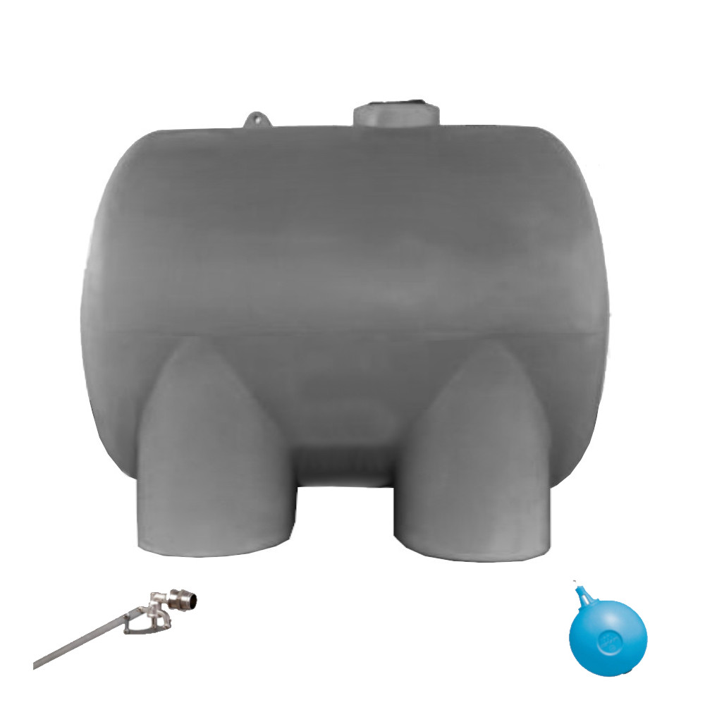 La cisterna ha una capacità totale di 2000 litri, si presenta con un colore grigio pietra ed ha una forma orizzontale.