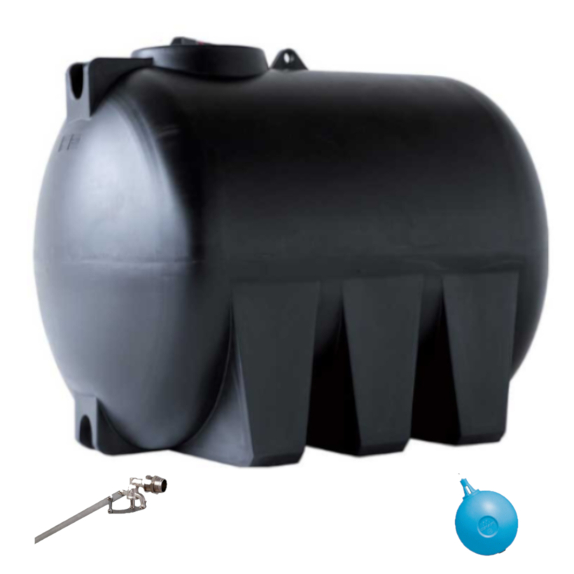 La cisterna ha una capacità totale di 3000 litri, si presenta con un colore nero ed ha una forma orizzontale.