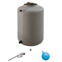 La cisterna ha una capacità totale di 120 litri, si presenta con un colore grigio pietra ed ha una forma verticale.