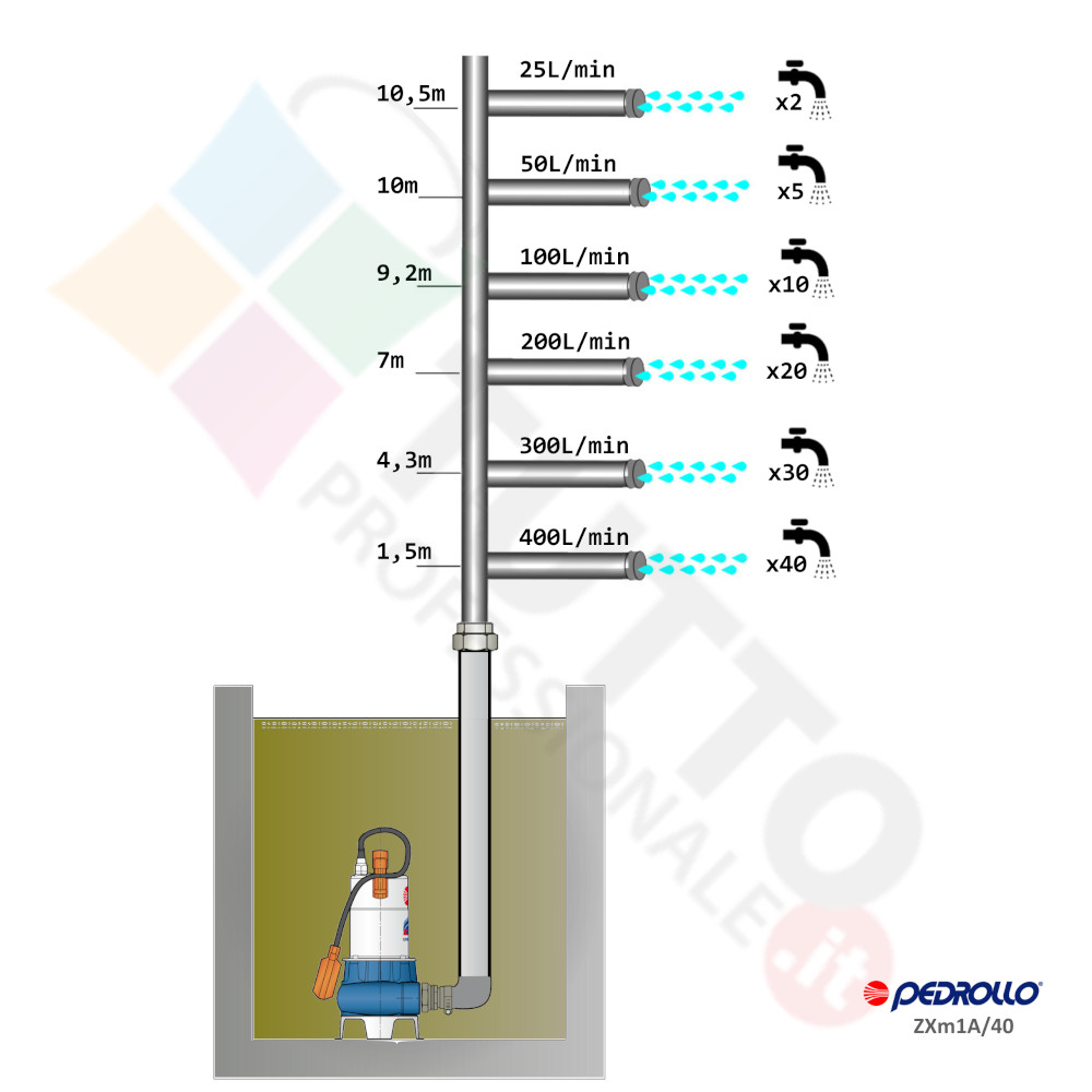 La pompa installata nella stazione acque nere è una Pedrollo Vortex da 0,85 hp, alimentata con una tensione monofase da 230V – 50Hz. Dispone di una girante vortex, un componente fondamentale nelle pompe per il sollevamento dei fluidi, grazie alla sua configurazione a vortice. Durante il funzionamento, il fluido viene convogliato verso la girante, creando un vortice che genera una zona di bassa pressione al centro. Questo permette al fluido di essere aspirato nella girante e trasportato lungo il percorso di sollevamento. La girante vortex è particolarmente efficace nel gestire solidi fibrosi, riducendo il rischio di intasamenti.