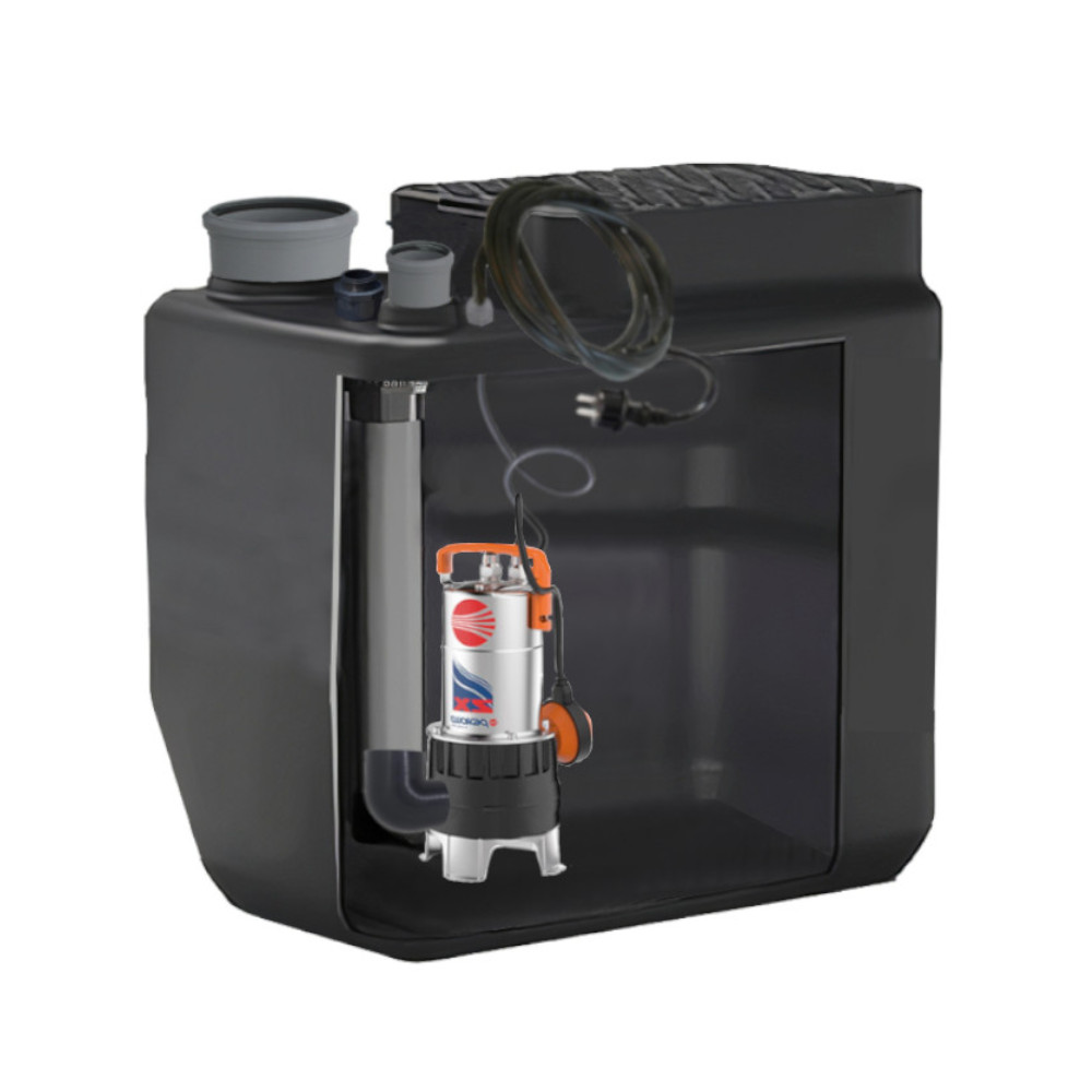 La stazione di sollevamento è la soluzione ideale per scaricare acque dei servizi igienici o da fossa biologica quando il normale deflusso dell’acque non avviene in maniera naturale. La stazione di sollevamento ci da la possibilità di realizzare bagni dove prima non era possibile grazie alla pompa molto potente inserita nel suo interno già assemblata in fabbrica. Dotata di pompa vortex in acciaio inox Pedrollo inserita nell’accumulo da 100 litri.