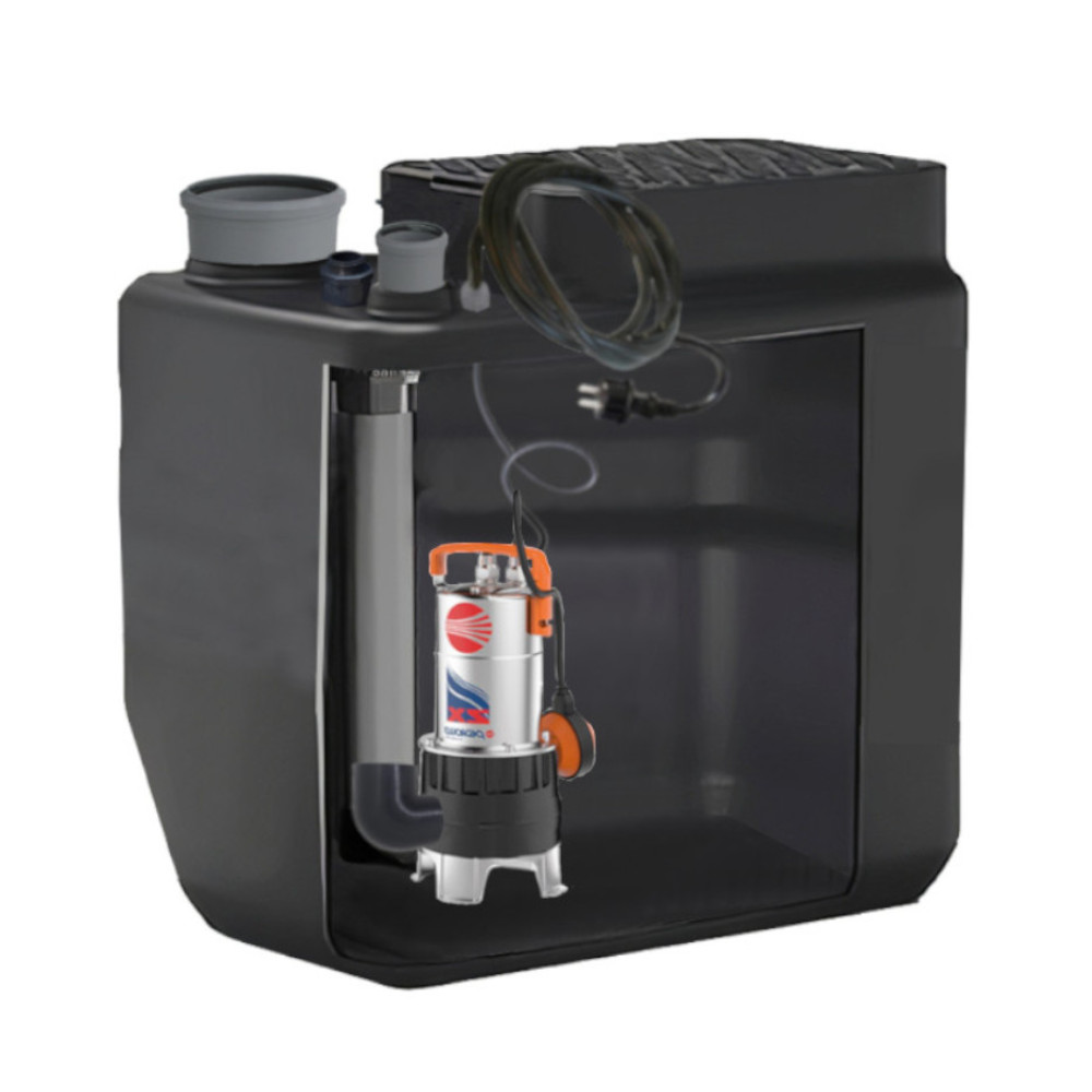 La stazione di sollevamento è la soluzione ideale per scaricare acque dei servizi igienici o da fossa biologica quando il normale deflusso dell’acque non avviene in maniera naturale. La stazione di sollevamento ci da la possibilità di realizzare bagni dove prima non era possibile grazie alla pompa molto potente inserita nel suo interno già assemblata in fabbrica. Dotata di pompa vortex in acciaio inox Pedrollo inserita nell’accumulo da 200 litri.
