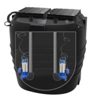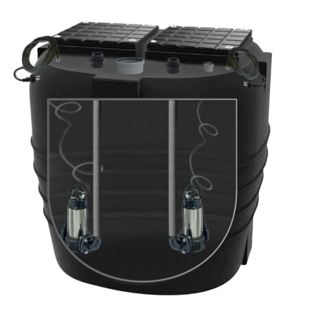 La stazione di sollevamento è la soluzione ideale per scaricare acque dei servizi igienici o da fossa biologica quando il normale deflusso dell’acque non avviene in maniera naturale. La stazione di sollevamento ci da la possibilità di realizzare bagni dove prima non era possibile grazie alla pompa molto potente inserita nel suo interno già assemblata in fabbrica. Dotata di due pompe trituratrici in ghisa inserite nell’accumulo da 800 litri.